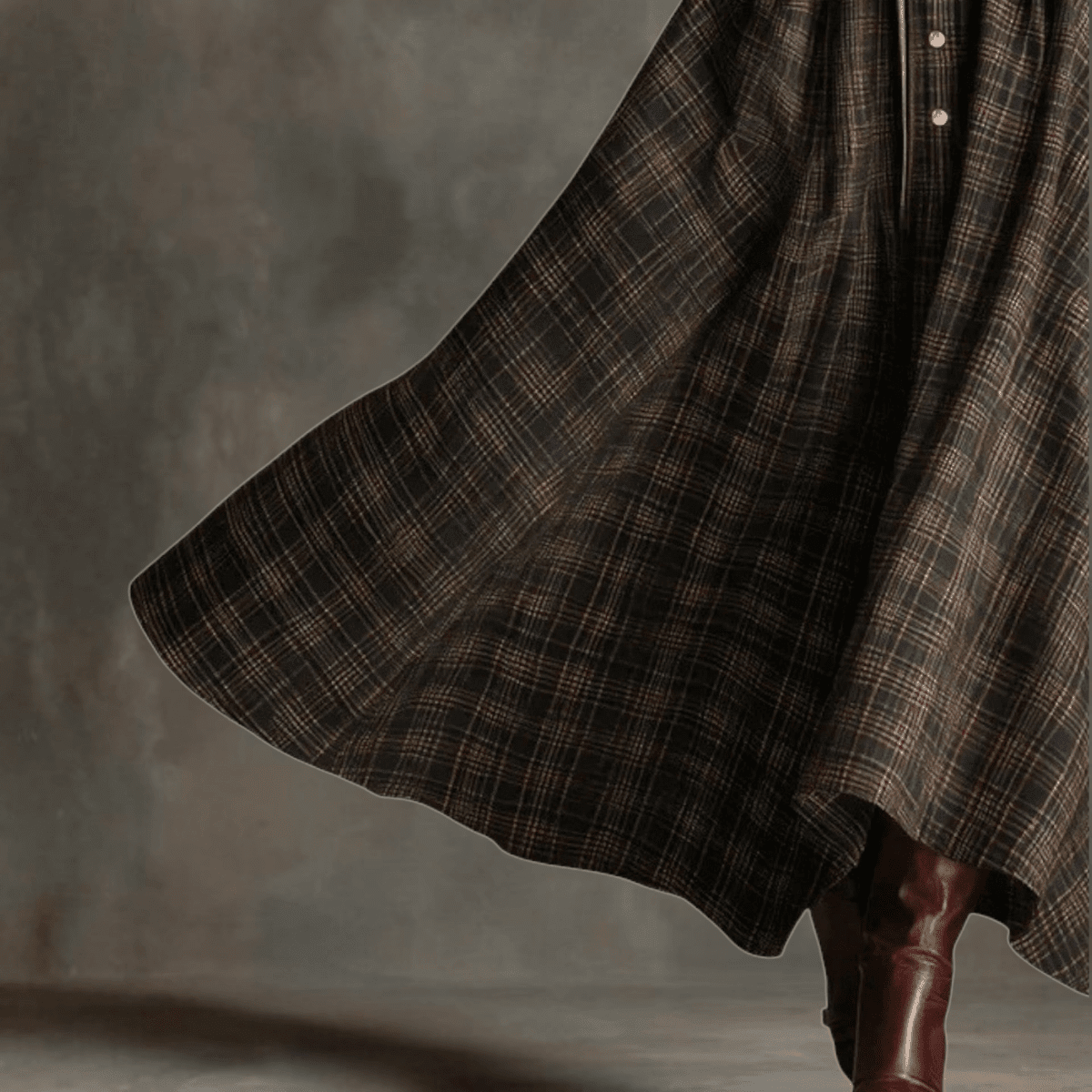 The fabric is soft, structured and gently weighted, giving it the perfect winter feel: warm enough for colder days, without being heavy or stiff. The flowing tartan pattern creates a classic, refined look, while the long sleeves and full length offer the coverage many women prefer during the colder months. Material: Premium Fabric