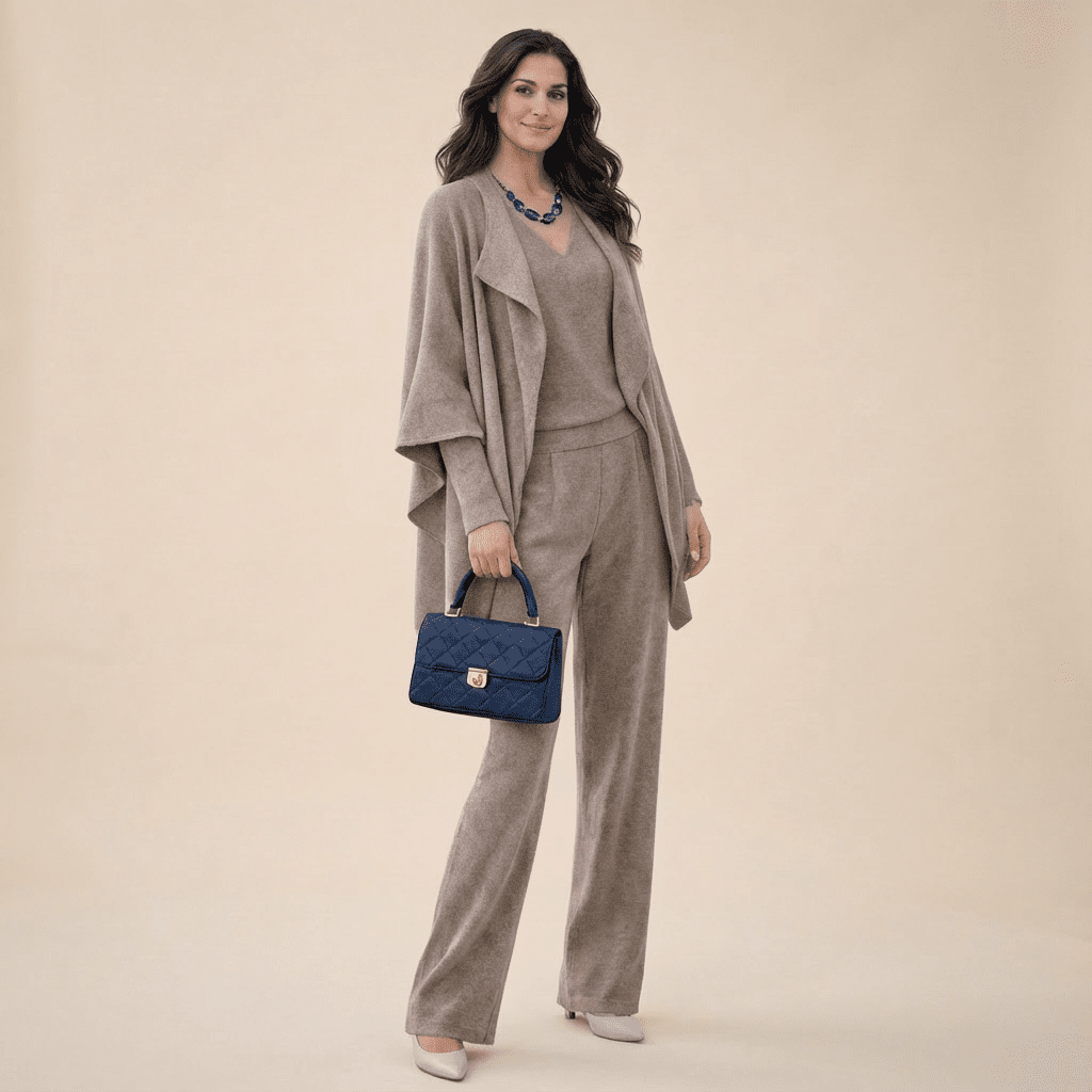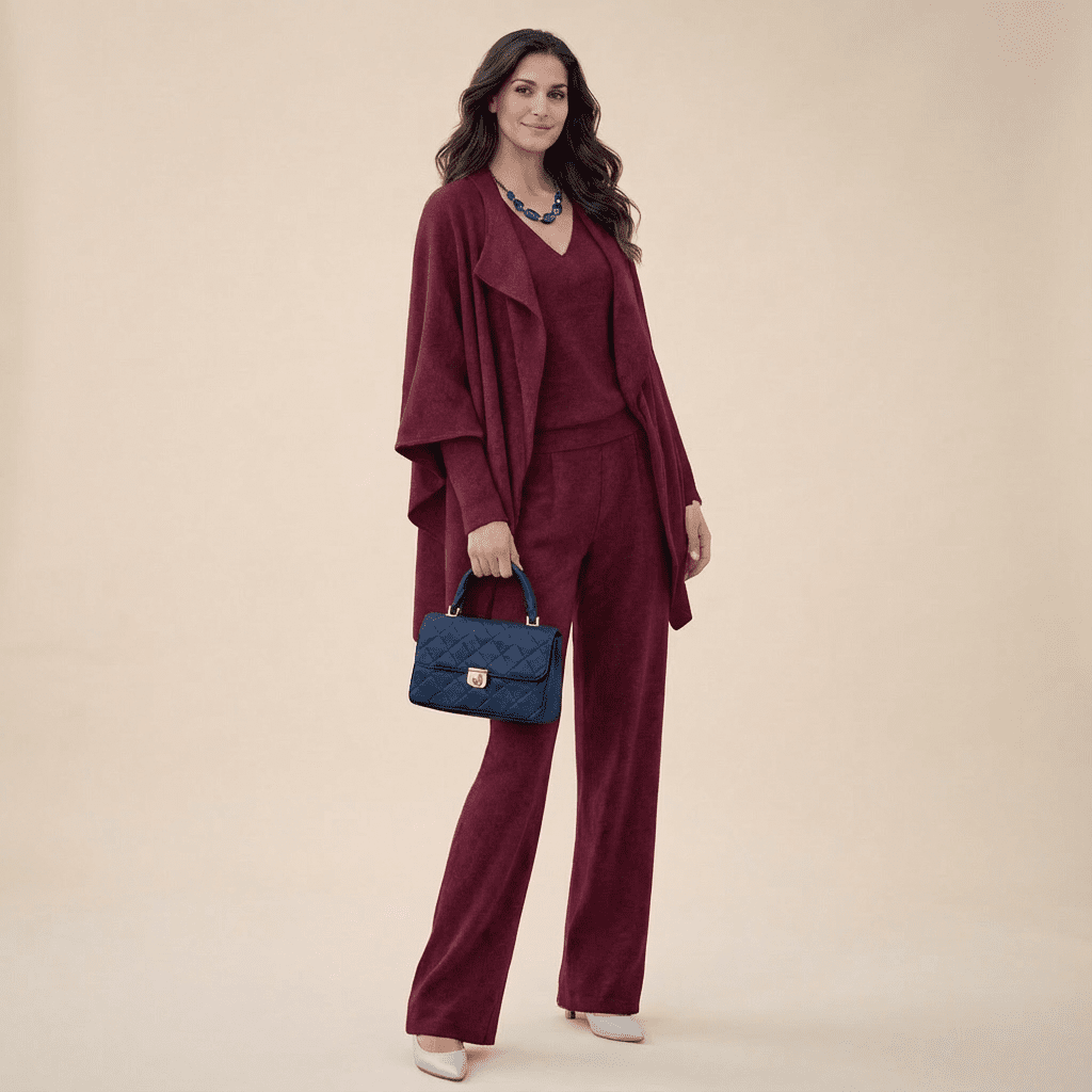 The knit set is soft, elegant, and incredibly flattering. I feel beautiful in it.