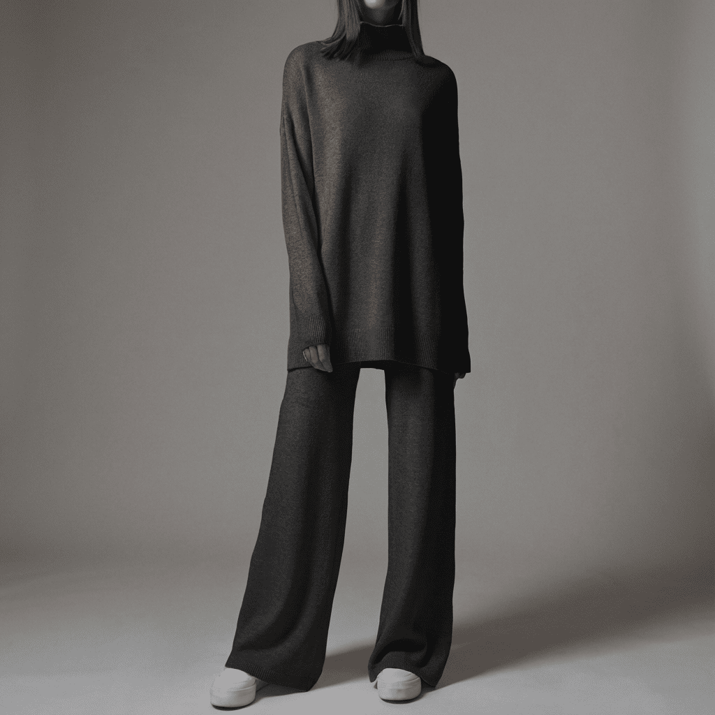 Essential, warm, and incredibly versatile, this set is made to support your style through colder days with ease. It features a soft turtleneck knit top paired with coordinating pants designed with a relaxed yet well-defined silhouette.