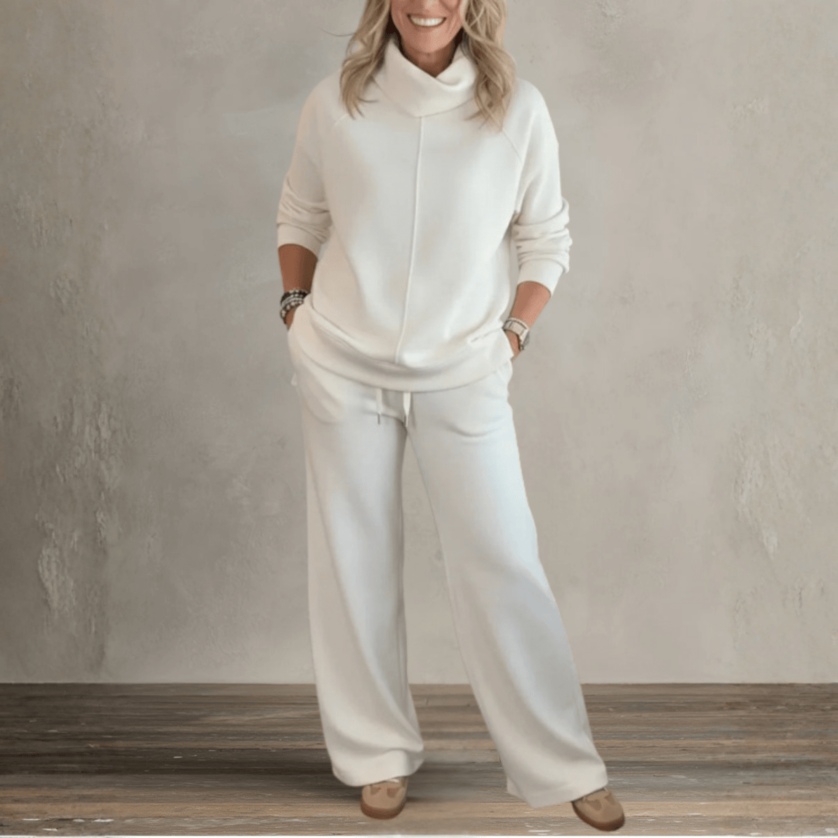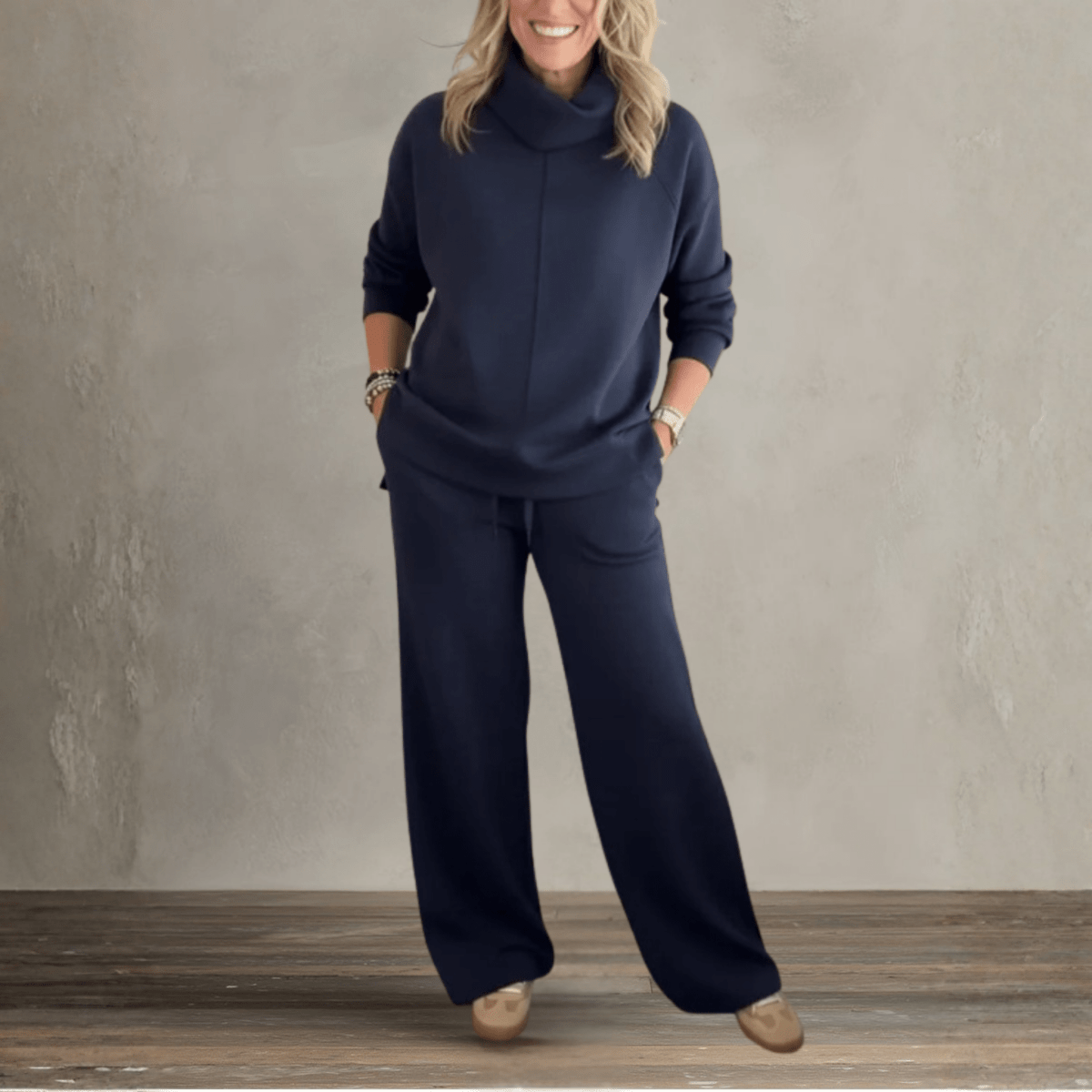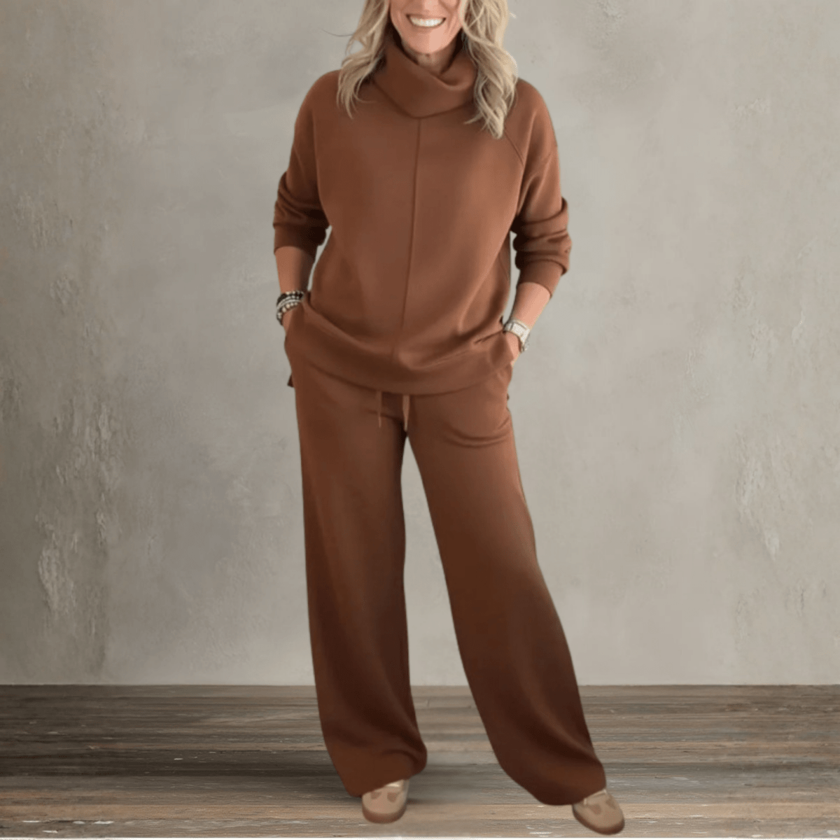 The knit set is soft, elegant, and incredibly flattering. I feel beautiful in it.